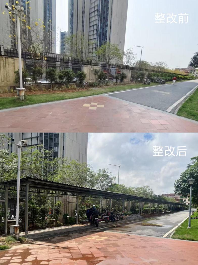 此外,凤翔社区联合镇智慧社会治理中心、镇消防救援所、小区物业、小区党支部及居民代表召开“乐聚凤翔议事会”,围绕车棚选址、消防设施安装、网格员应急响应机制等关键问题共商对策。在各方协同下,小区最终新增100米电动自行车停车棚,提供约350个规范停车位,棚内配套智能监控和消防器材,切实解决“停放乱、安全忧”问题。