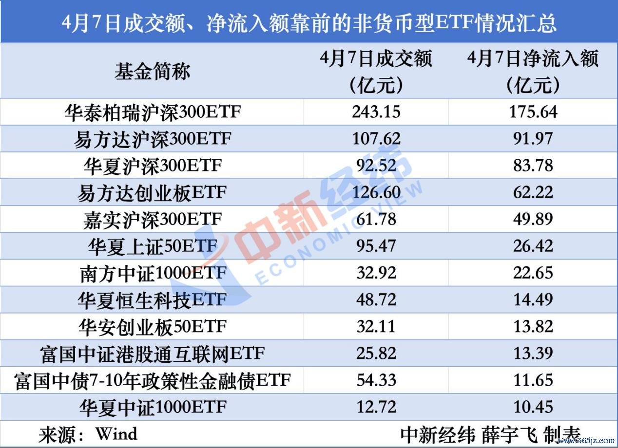据Wind数据显示,7日,华泰柏瑞沪深300ETF成交额约243.15亿元人民币,易方达创业板ETF、易方达沪深300ETF成交额分别约126.60亿元、107.62亿元。另外,华夏上证50ETF、华夏沪深300ETF、华夏上证科创板50ETF、嘉实沪深300ETF的成交额均突破50亿元。