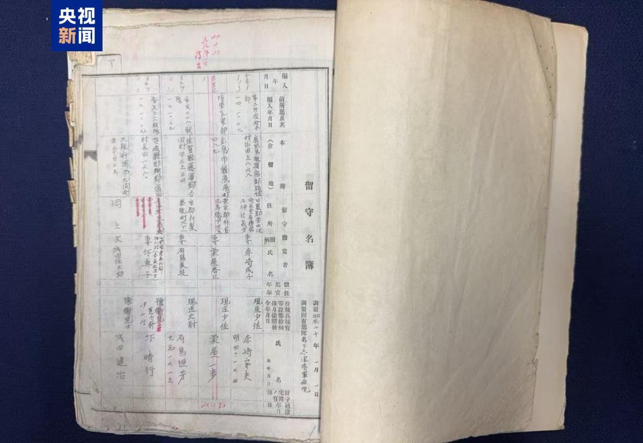 留守名簿属于档案文件,其中包含当时日军部队成员的姓名、出生日期、户籍、职种、兵种等信息。